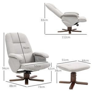 Home New Arrivals HOMCOM Linen Swivel Recliner Chair with Footstool, Upholstered Reclining Armchair with Wooden Base for Living Room, Light Grey